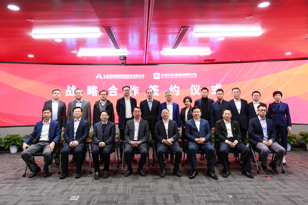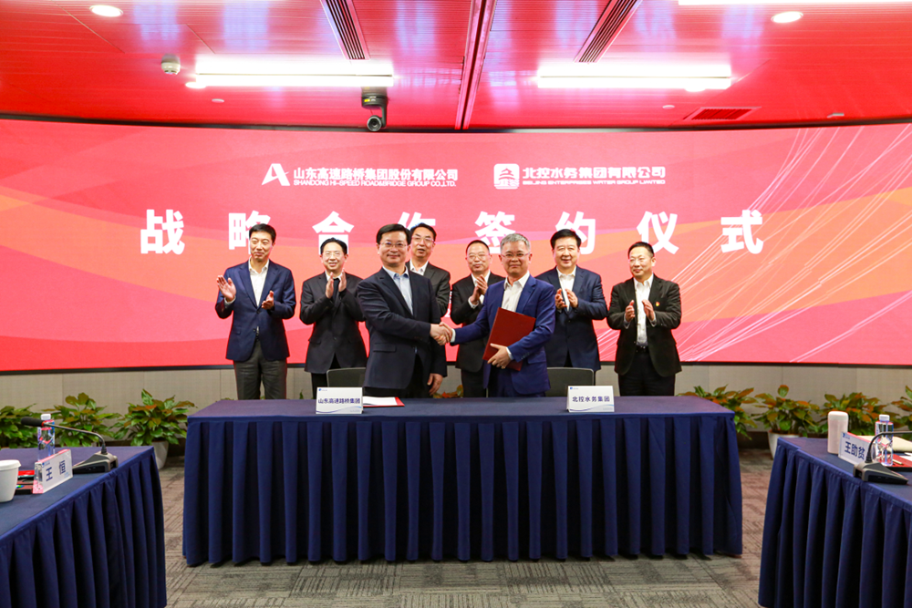3月21日,公司與北控水務(wù)集團(tuán)在京簽署戰(zhàn)略合作框架協(xié)議,雙方將本著“資源共享、優(yōu)勢(shì)互補(bǔ)、強(qiáng)強(qiáng)聯(lián)合、互惠互利”的原則,構(gòu)建合作共贏、可持續(xù)發(fā)展的戰(zhàn)略合作伙伴關(guān)系。山東高速集團(tuán)總工程師、公司黨委書(shū)記、董事長(zhǎng)周新波與北控水務(wù)集團(tuán)總裁周敏分別代表雙方簽約。山東高速集團(tuán)黨委書(shū)記、董事長(zhǎng)周勇,黨委常委、副總經(jīng)理李航,執(zhí)行總監(jiān)、山高金融集團(tuán)董事會(huì)主席王小東;北京控股集團(tuán)黨委書(shū)記、董事長(zhǎng)田振清,黨委常委、副董事長(zhǎng)、常務(wù)副總經(jīng)理、北控水務(wù)集團(tuán)董事局主席李永成,黨委常委、副總經(jīng)理王劍,總經(jīng)理助理、北京控股總裁熊斌等及北控水務(wù)集團(tuán)執(zhí)行總裁李力等執(zhí)行機(jī)構(gòu)領(lǐng)導(dǎo)出席簽約儀式。
